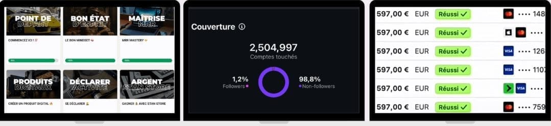 👉 Il suffit de suivre notre système, d'utiliser nos scripts, de suivre nos retours et une semaine après ton lancement tu peux obtenir ton retour sur investissement.
